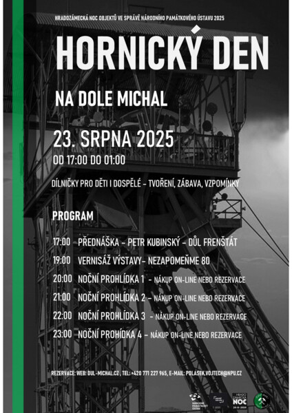 Důl Michal vás srdečně zve na mimořádný večer věnovaný hornické historii, vzpomínkám a tvořivé atmosféře. V rámci Hradozámecké noci 2025 se uskuteční Hornický den, který nabídne program pro celou rodinu.